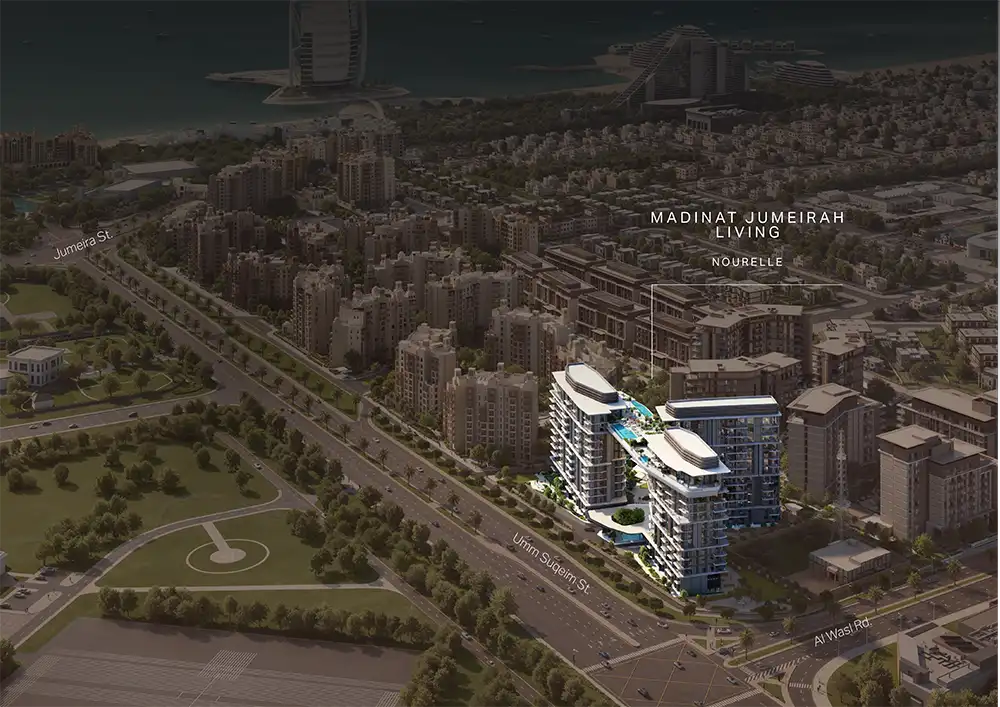 Nourelle at Madinat Jumeirah Living is a residential masterpiece envisioned by Meraas, offering an exquisite collection of 1- to 4-bedroom apartments. It is more than an address; it is a redefinition of luxury, captured within three gracefully interconnected towers that merge modern sensibility with timeless elegance.